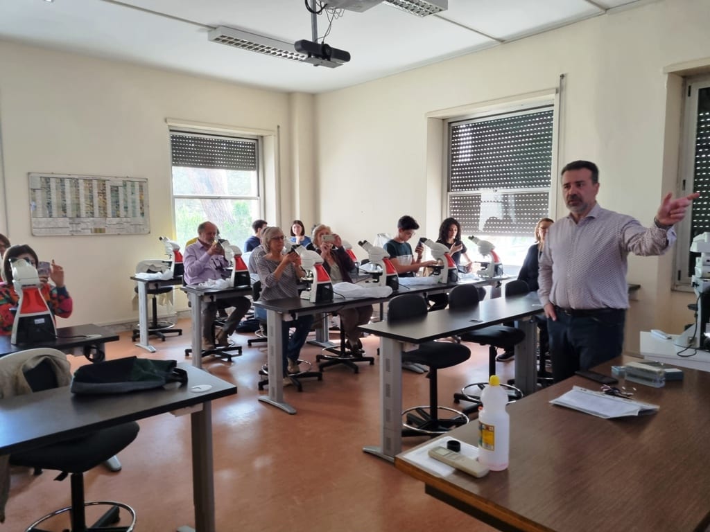 Al termine dell’incontro il prof. Michele Lustrino, docente di Petrografia, di Petrologia e geodinamica e di Transizione energetica, ha arricchito questo momento di condivisione dei risultati con una interessante visita un laboratorio di microscopia petrografica, al quale hanno potuto accedere numerosi studenti e docenti presenti.